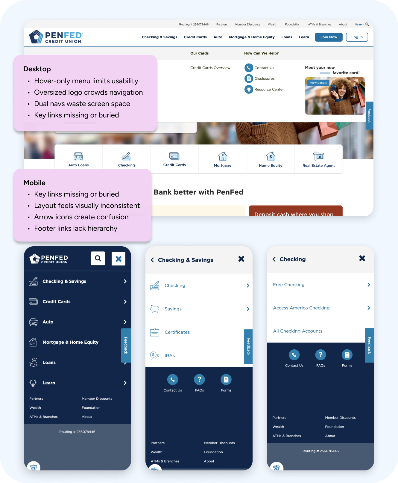 Modernizing three outdated nav systems into one streamlined, intuitive, responsive experience that improves usability, accessibility, and brand consistency.